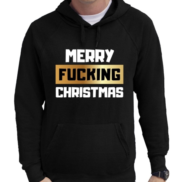 Foute Kerst hoodie merry fucking christmas zwart voor heren
