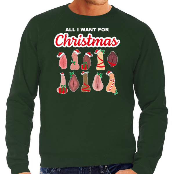 Foute Kersttrui/sweater voor heren – All I Want is – rood – blote kont – rendier