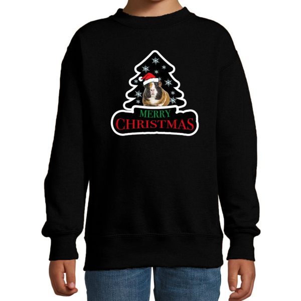 Dieren kersttrui cavia zwart kinderen – Foute Cavia knaagdieren kerstsweater