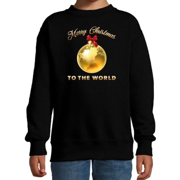 Kersttrui/sweater voor kinderen – Merry Christmas – wereld – zwart